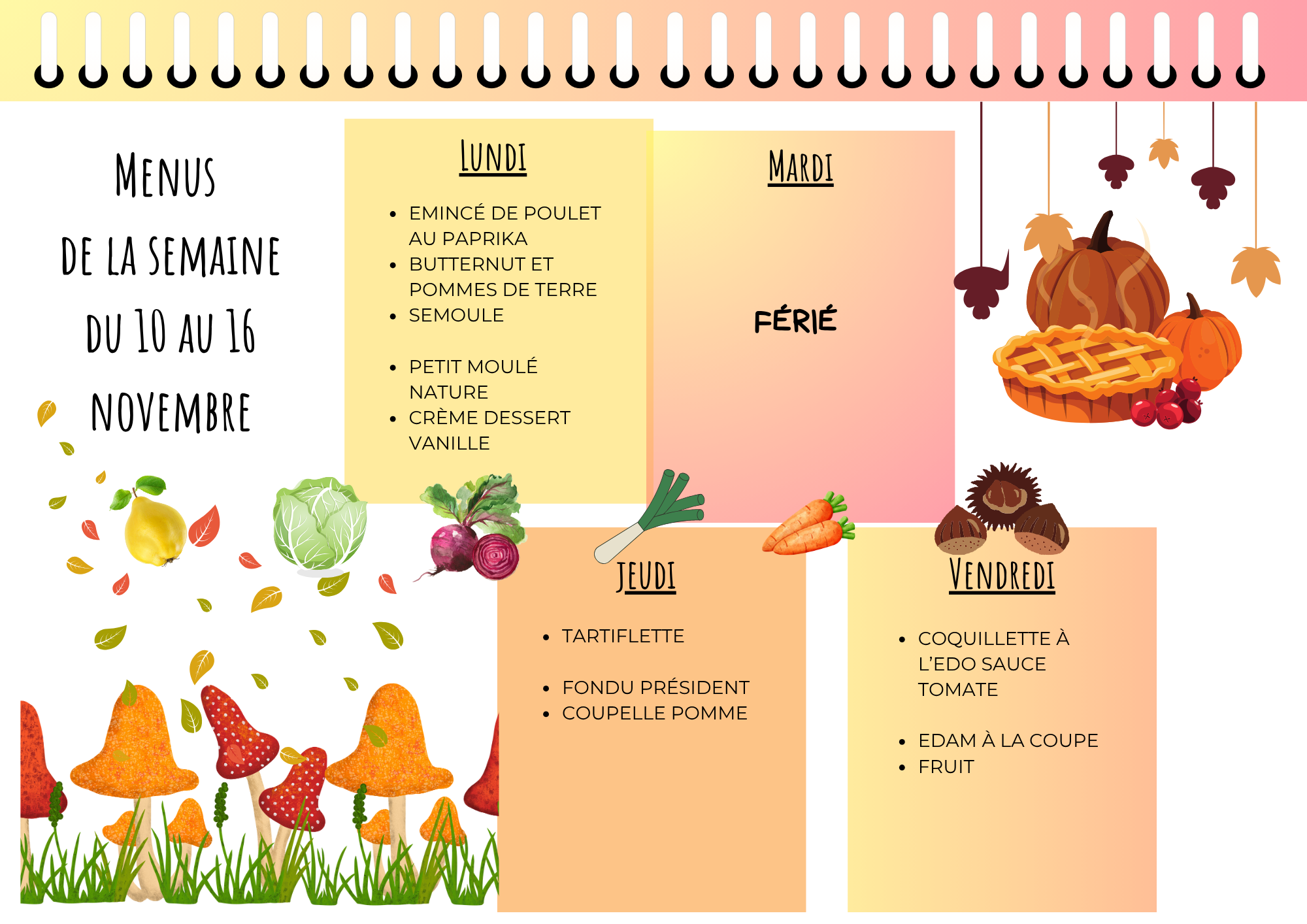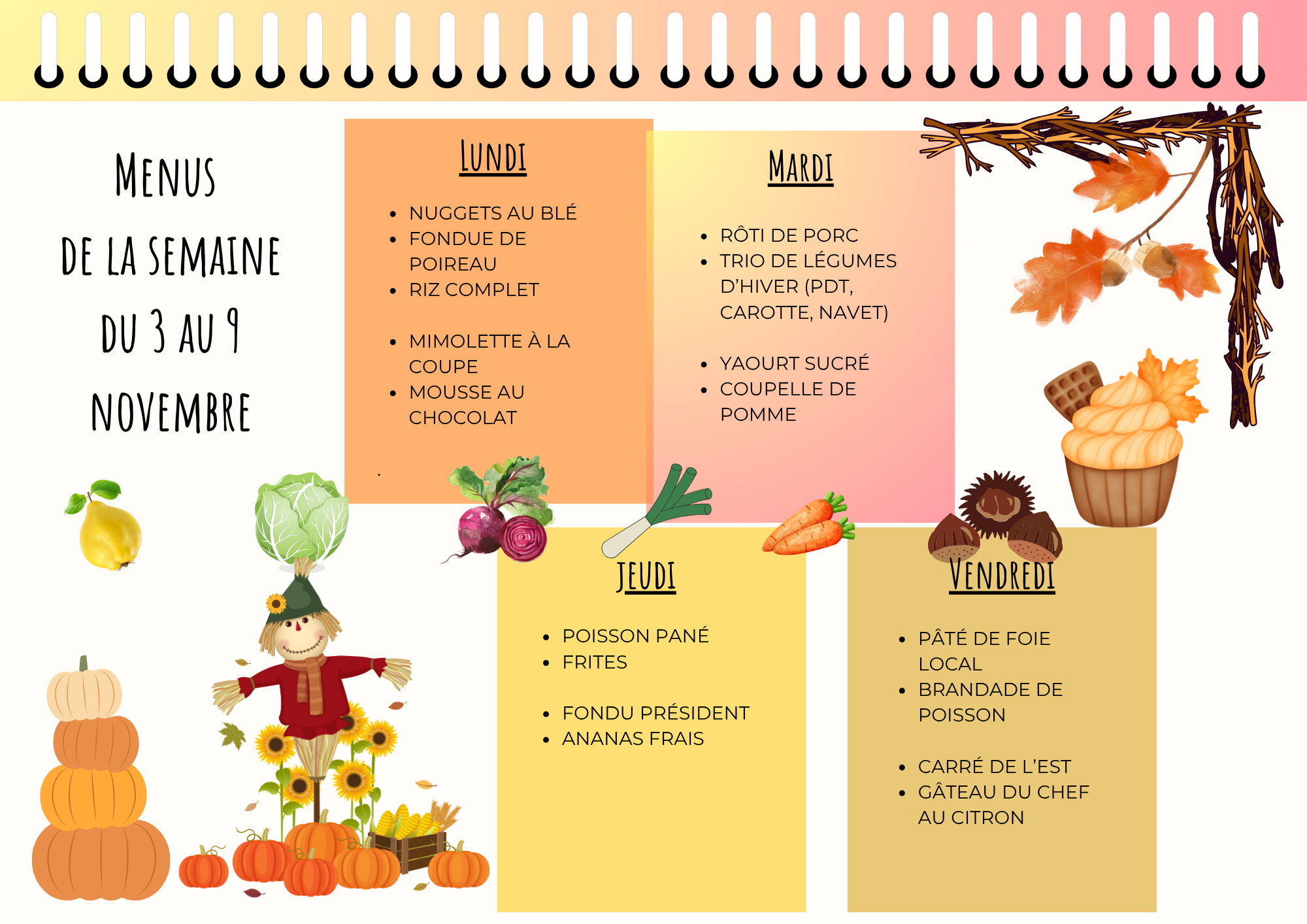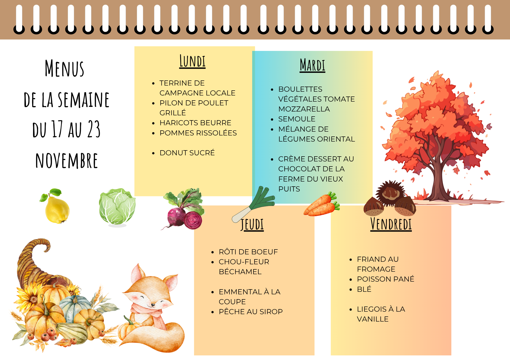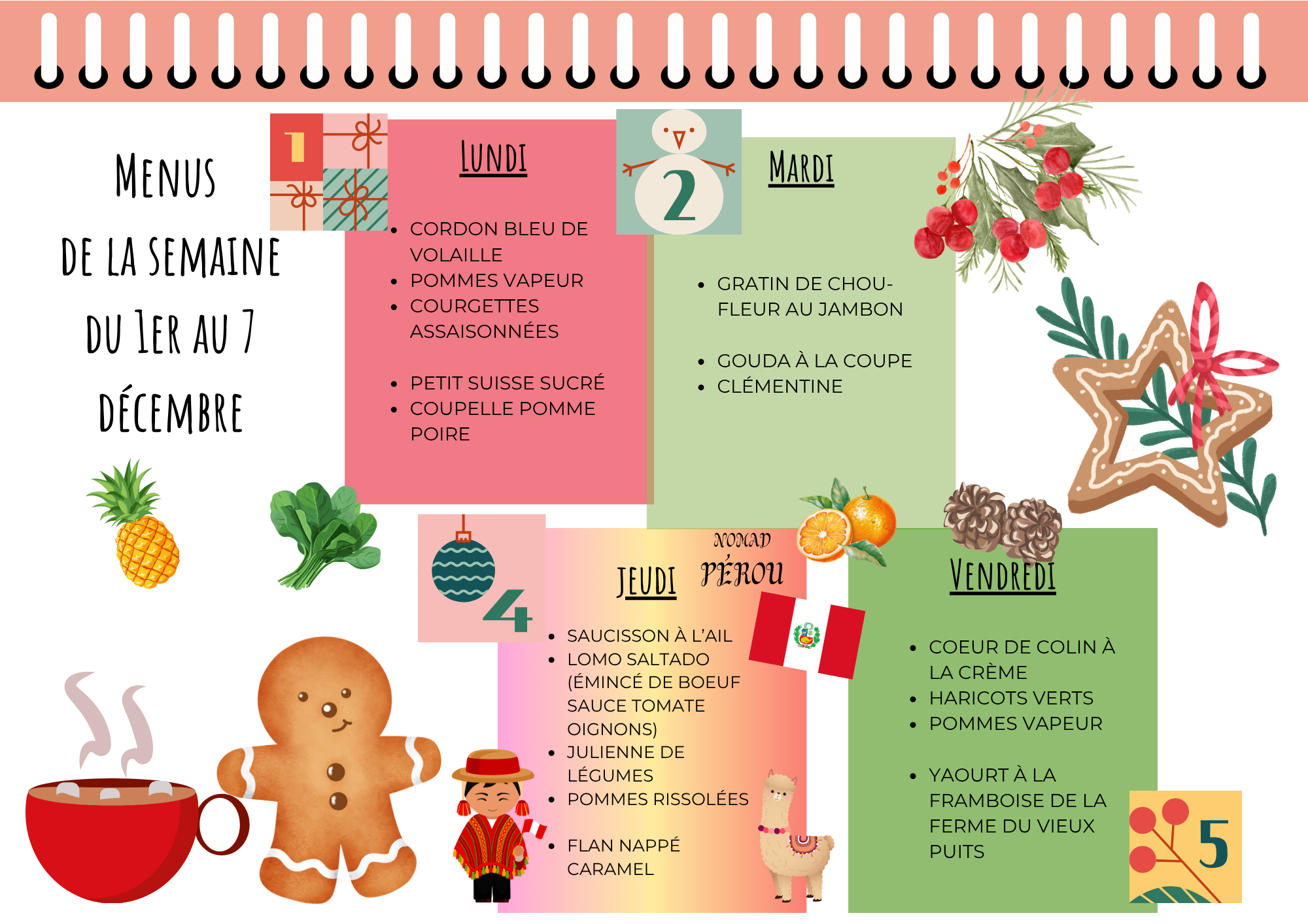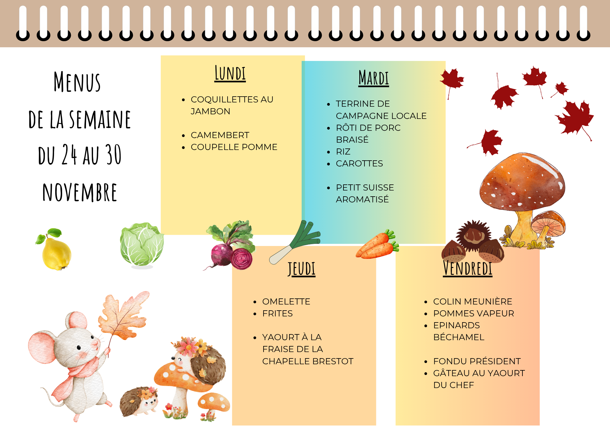 Menu cantine de la semaine :